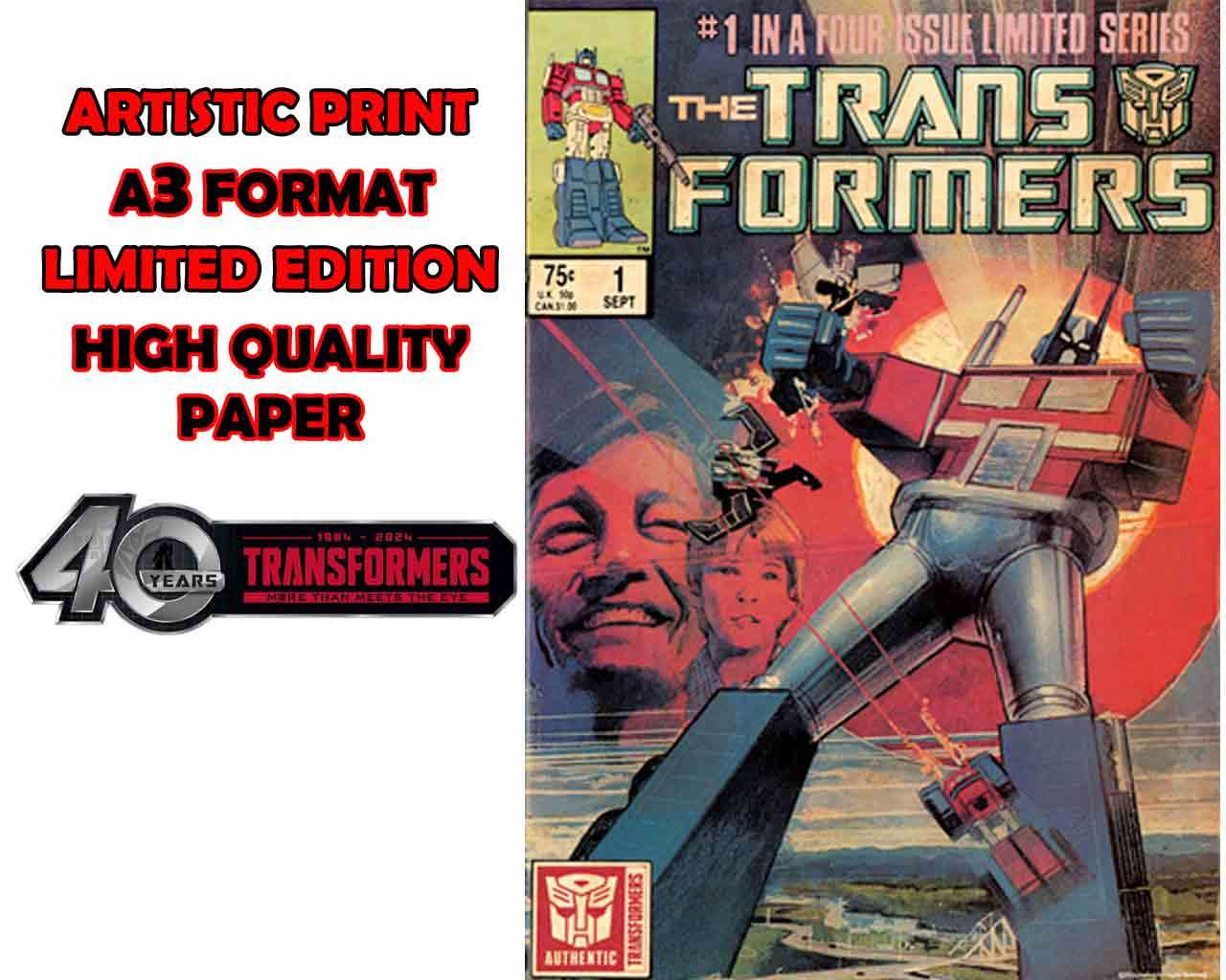 Nel raccontare la storia di come sono nati i Transformers e nel gettare le basi per tutta la tradizione che ne è seguita, la serie originale dei fumetti Transformers della Marvel è durata 80 numeri a partire dal 1984 e fino al 1991. Questa stampa artistica ricrea la copertina del primo numero, è in formato A3 (420 x 297 mm), è stampata su carta di alta qualità presso una delle più antiche tipografie del Regno Unito ed è limitata a soli 995 esemplari in tutto il mondo.