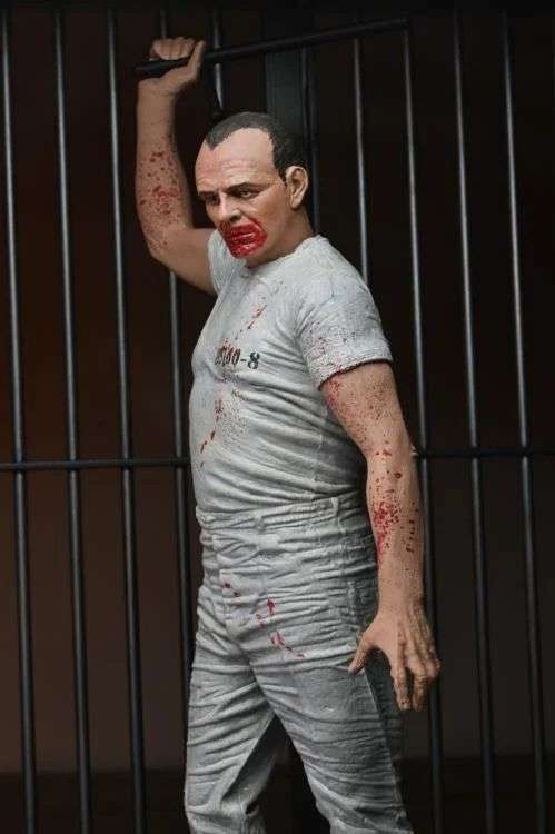 Neca celebra una delle scene più amate della storia del cinema: l'incredibile e sanguinosa fuga del Dr. Hannibal Lecter dalla prigione, da "Il Silenzio degli Innocenti"! La figura è assolutamente somigliante a Anthony Hopkins ed è dotata di teste intercambiabili, bastone e base diorama della prigione. Da non perdere!