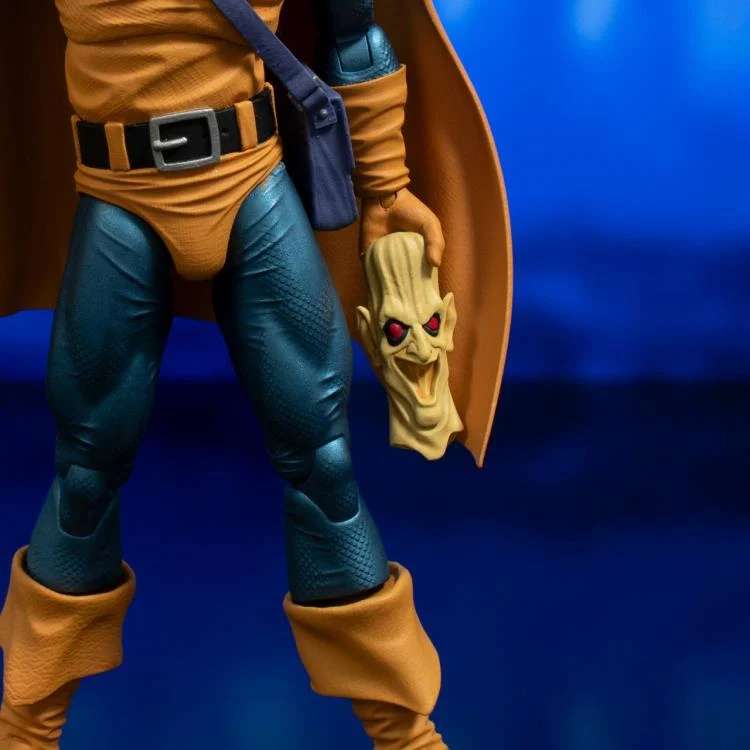 Da Diamond Select Toys! C'è un nuovo Goblin in città ed è assetato di sangue! L'Hobgoblin arriva con una base espositiva a forma di aliante goblin, con una varietà di mani, teste e accessori intercambiabili...e bombe zucca! Questa action figure in scala 1/10 è alta circa 7 pollici e presenta 16 punti di articolazione