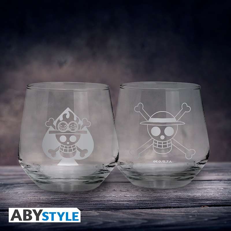 Il set di bicchieri One Piece di ABYstyle! I 2 fratelli, Rufy e Ace e i loro leggendari teschi sono tornati con questo magnifico set di bicchieri One Piece 2 di ABYstyle!