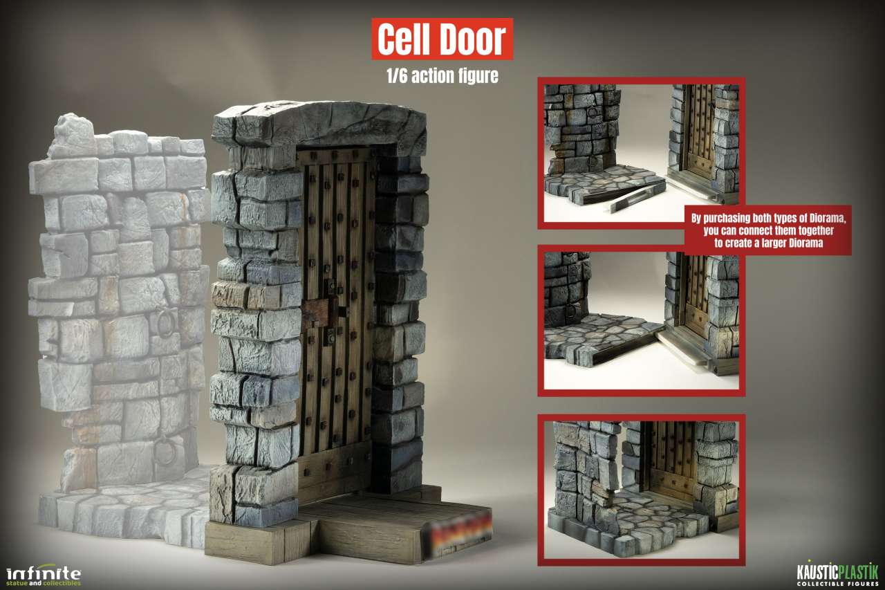 Questo diorama altamente dettagliato si ispira all'iconica porta della cella del castello del Dr. Frankenstein.