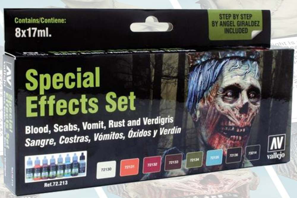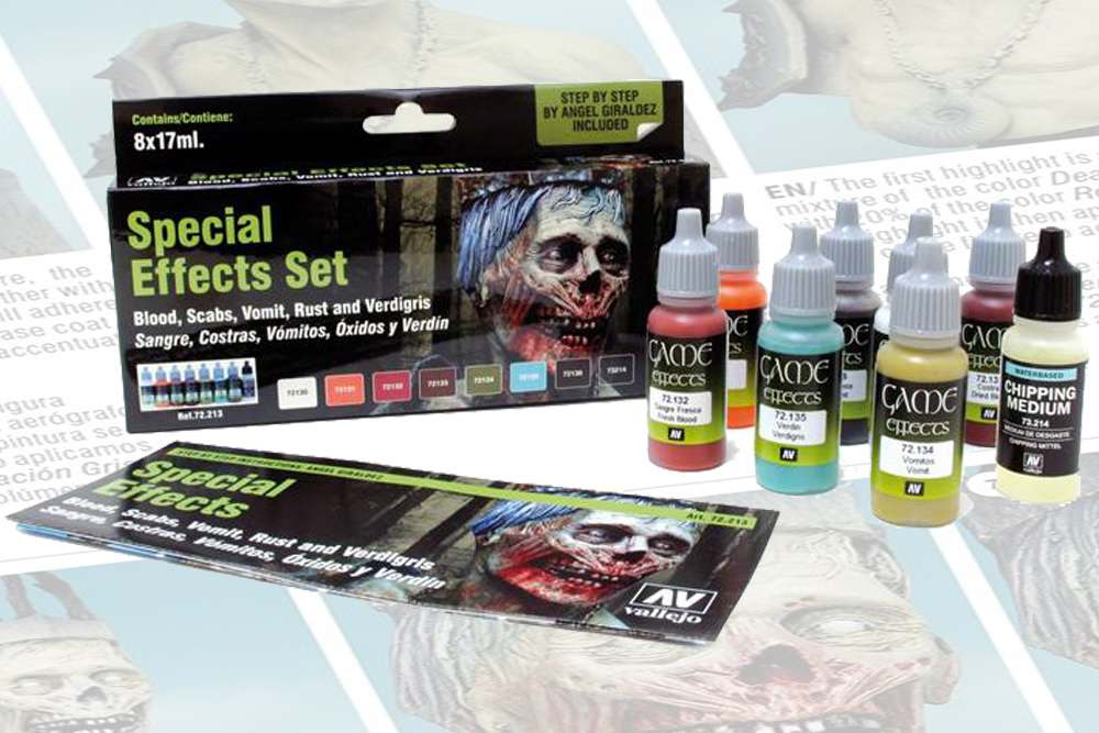 Box con 8 colori della linea Game Color e una guida alla pittura del famoso Angel Giraldez per ottenere effetti come sangue, croste, vomito, ruggine e ossido.