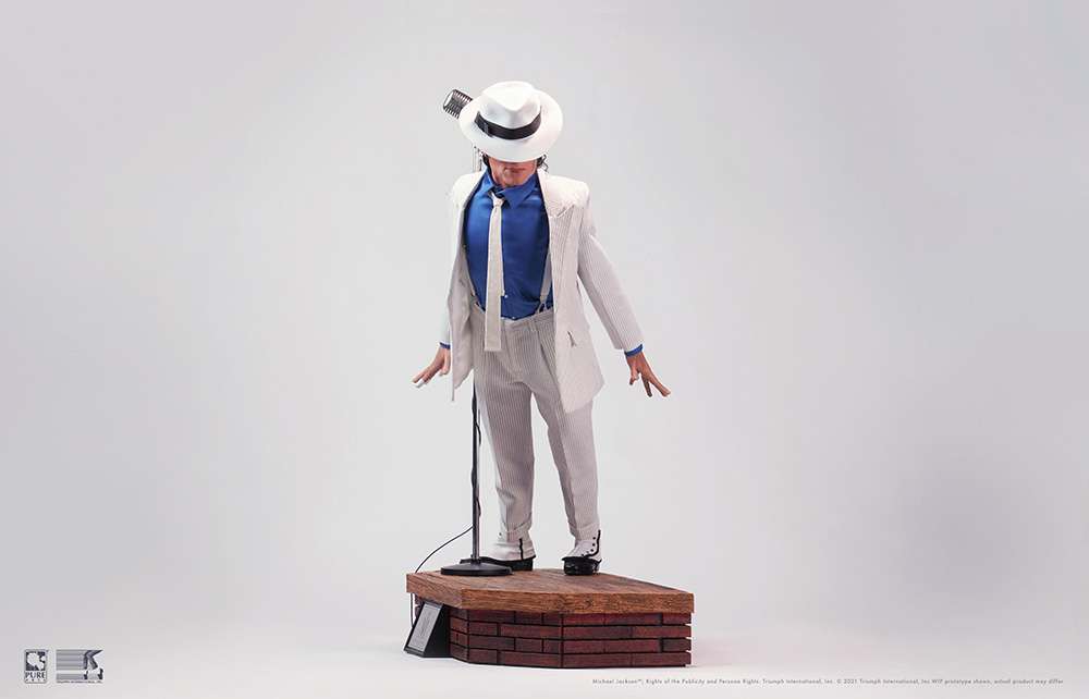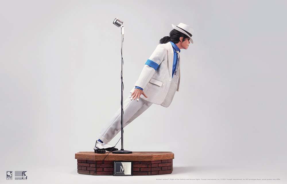 Da PureArts la statua di Michael Jackson catturato nella spettacolare posa del video di MTV Smooth Criminal del 1988, poi inserita come scena anche del lungometraggio Moonwalker uscito nello stesso anno. La statua in resina scala 1/3, è incredibilmente dettagliata con vestiti in stoffa, vari accessori fedeli agli originali, e base con logo in metallo. Arriva in due versioni Regular e Deluxe.