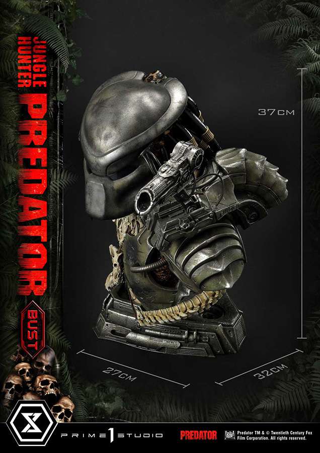 Da Prime 1 Studio il busto in scala 1/3 di Jungle Hunter Predator, dal film Predator del 1987. Il busto di Predator con Bio-Mask è riprodotto con incredibile perfezione di dettagli, è dotato di funzioni led per il Plasma Cannon, e include base scolpita a tema.