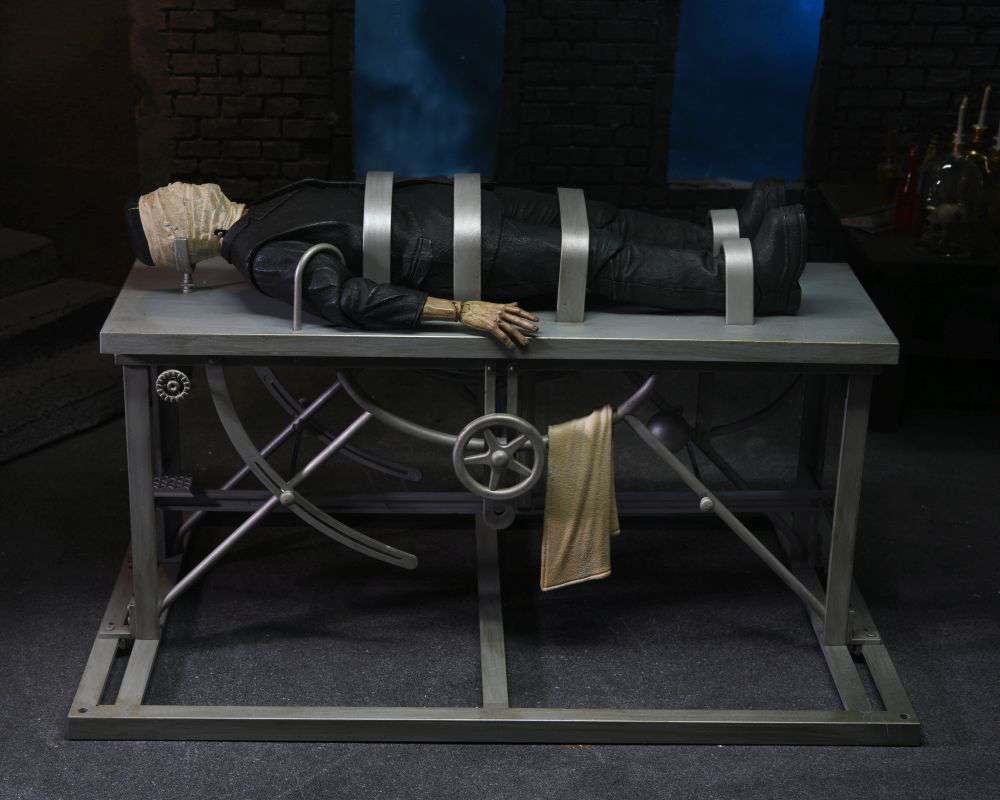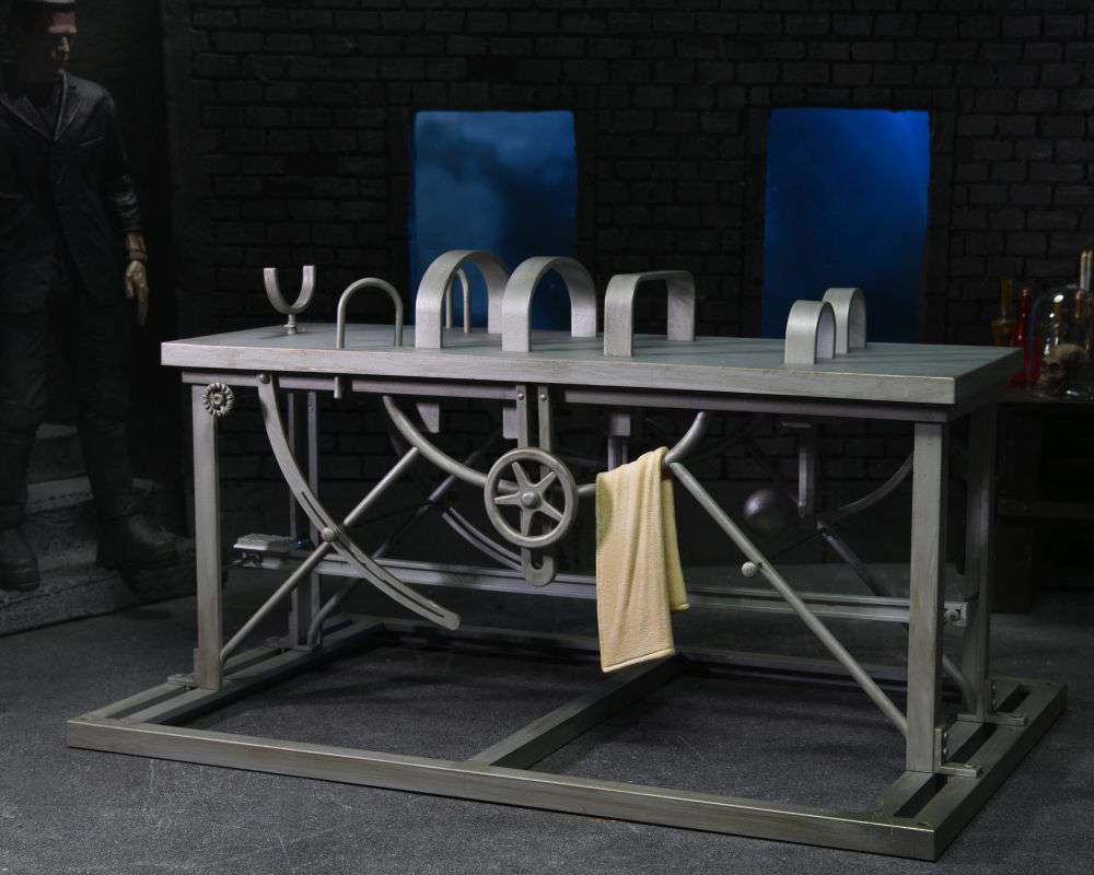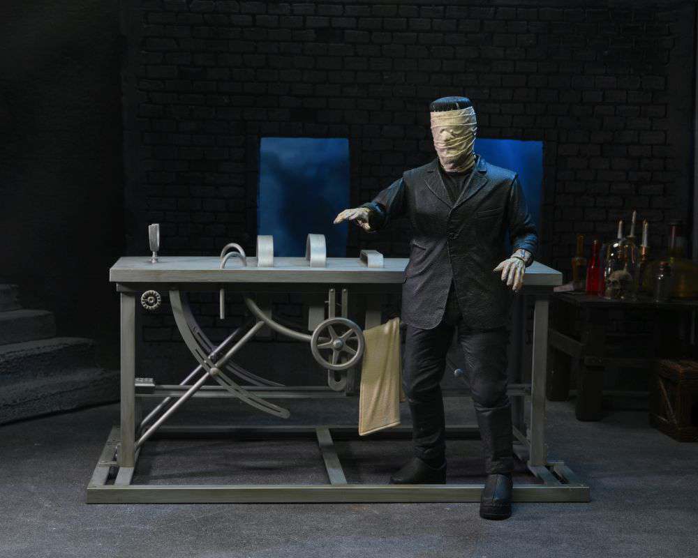 Neca presenta un fantastico set di accessori da utilizzare con l'action figure Universal Monster Frankenstein! Nel set troverete un tavolo che misura circa 23 cm x 15 cm, una testa con bende, un telo e una torcia.