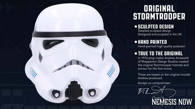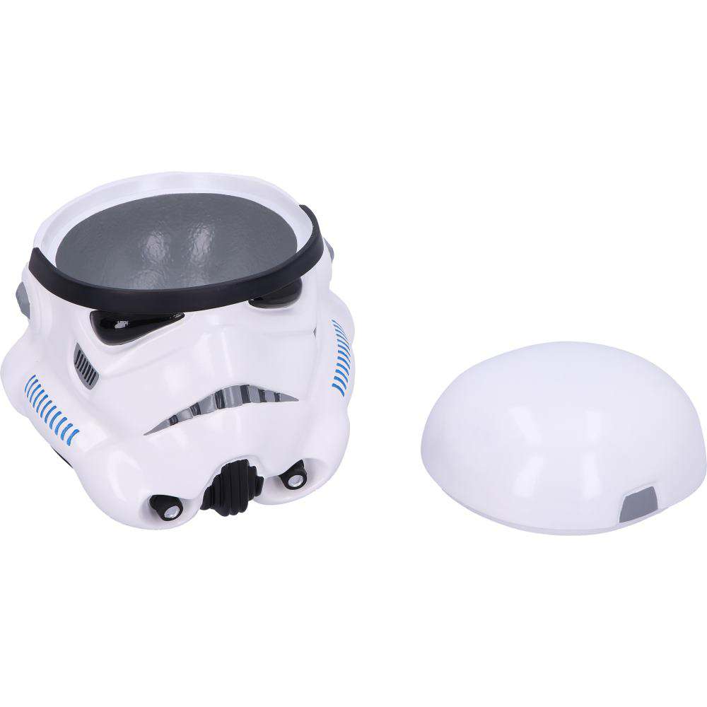 Disegnato dal famoso artista Andrew Ainsworth della Shepperton Design Studios questo casco è realizzato in finissima resina e accuratamente dipinto a mano. È dotato di un coperchio segreto che può essere rimosso per rivelare uno spazioso scomparto in cui riporre i vostri preziosi manufatti e spuntini Misura 17,5 cm