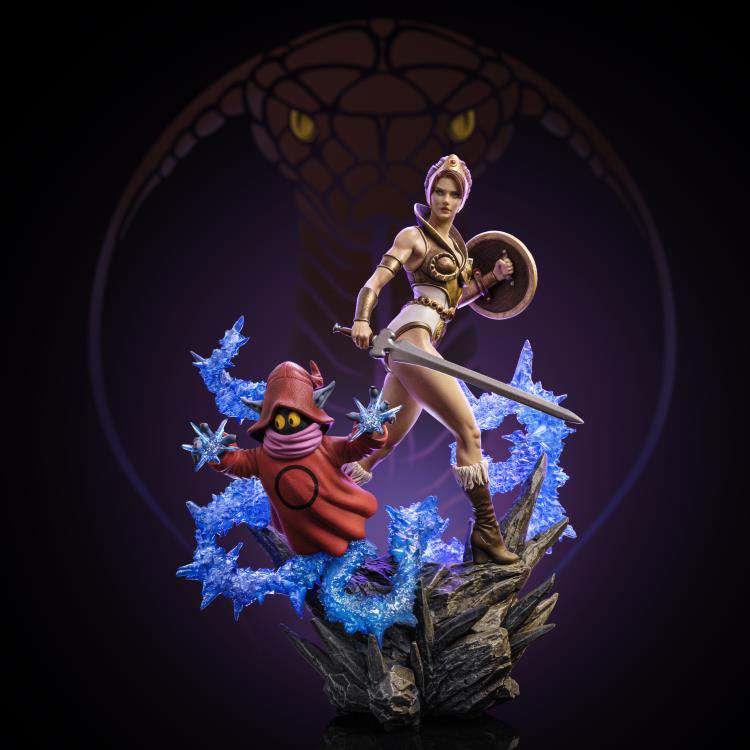 Questa magnifica resina immortala Teela, su una base di grande effetto, arricchita dalla presenza dell'amatissimo Orco