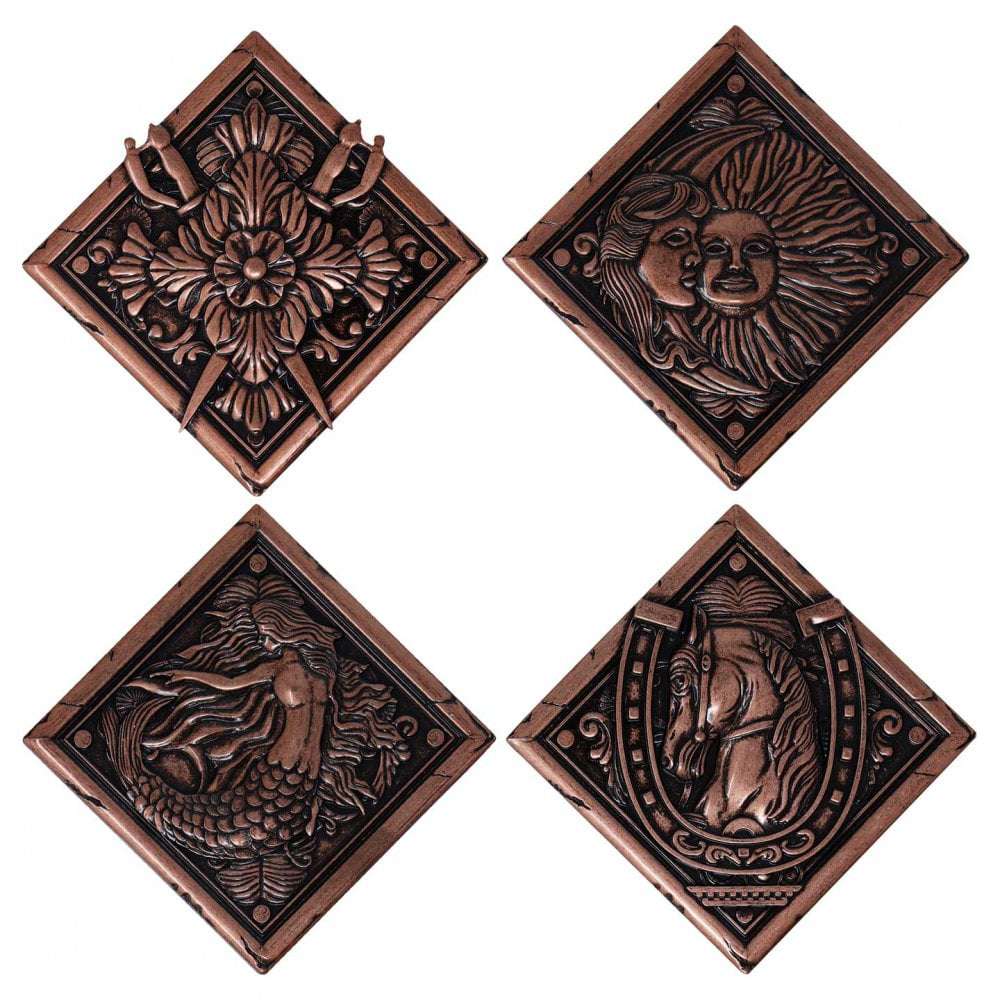 Dall'incredibile ottavo capitolo della madre di tutti i videogiochi survival horror, RESIDENT EVIL/BIOHAZARD, questo impressionante set dei medaglioni della casa di Resident Evil Village contiene quattro dettagliatissime repliche in metallo dei medaglioni tratti dal gioco ed è limitato a soli 5.000 esemplari in tutto il mondo; ogni scatola da esposizione è numerata individualmente.