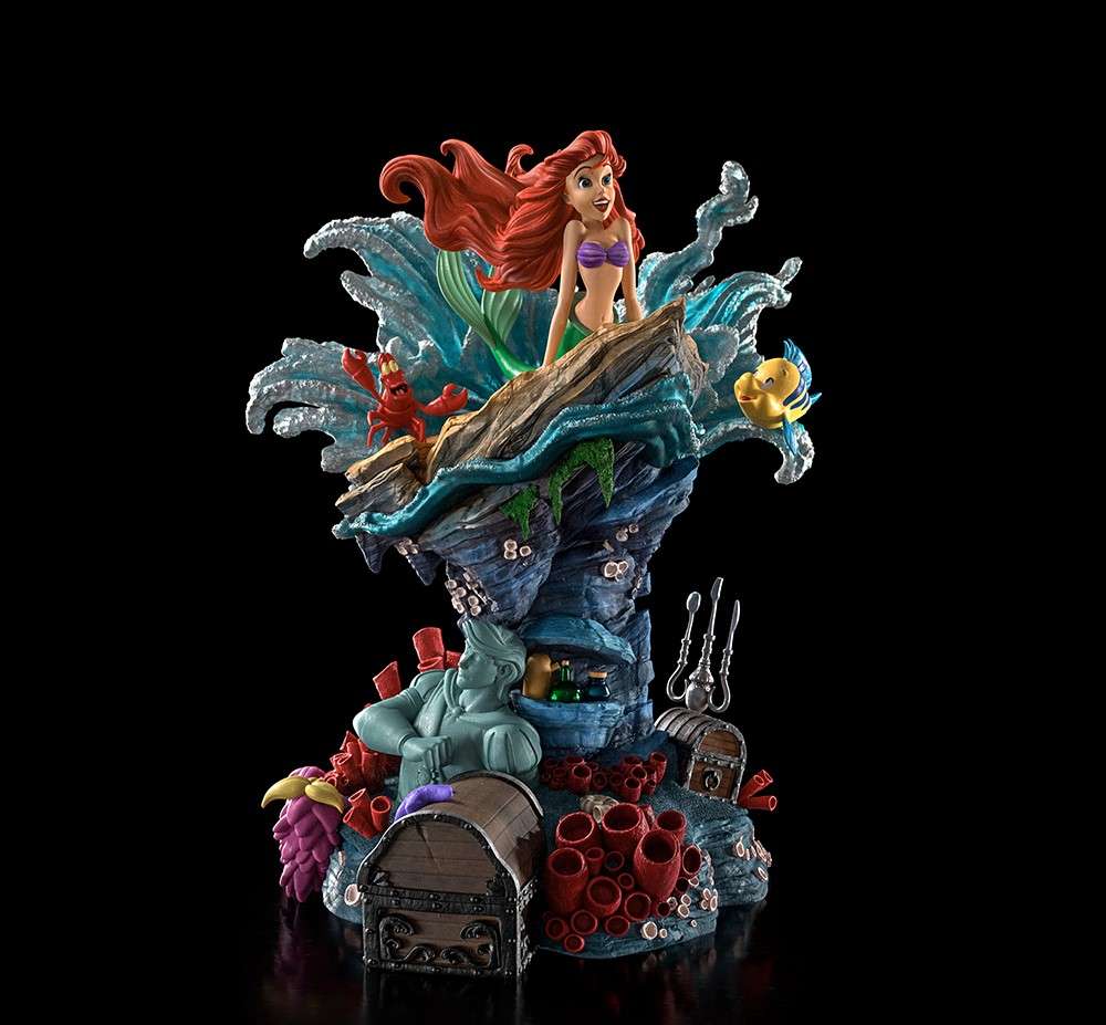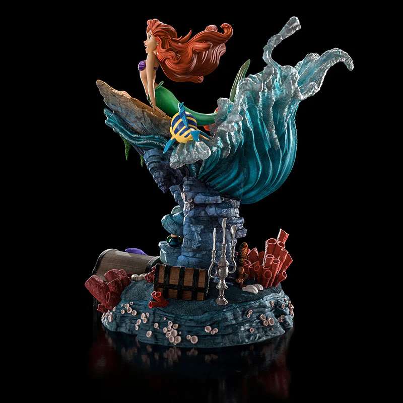 Questa versione in scala 1/10 de La Sirenetta, edizione deluxe, immortala la bella Ariel su di una base in compagnia dei suoi celebri amichetti Sebastian e Flounder, nella miglior tradizione di Iron STudios