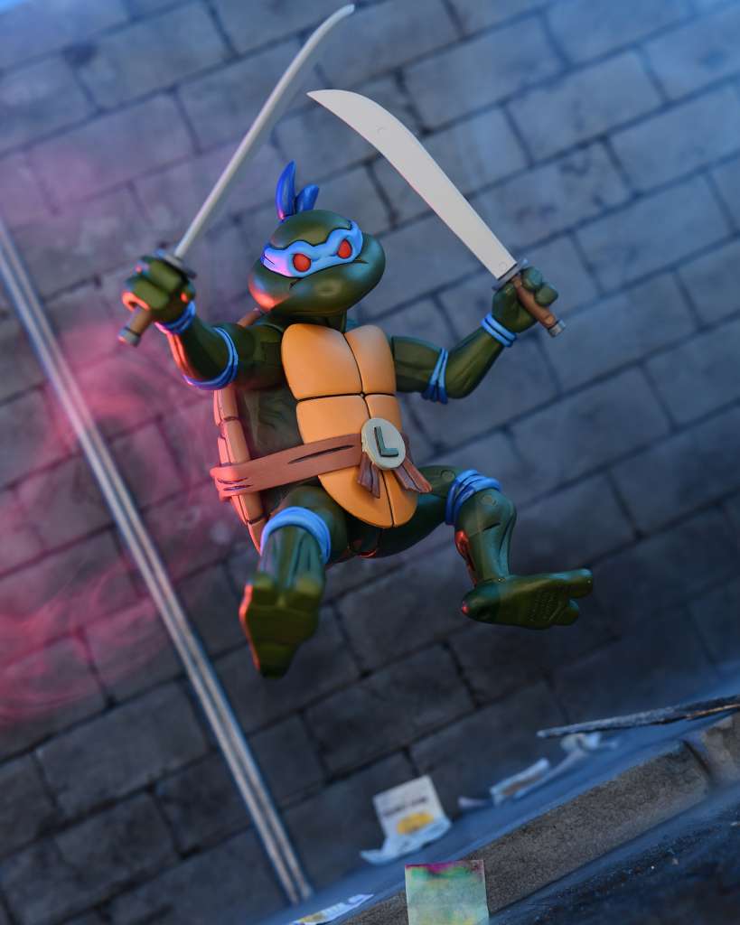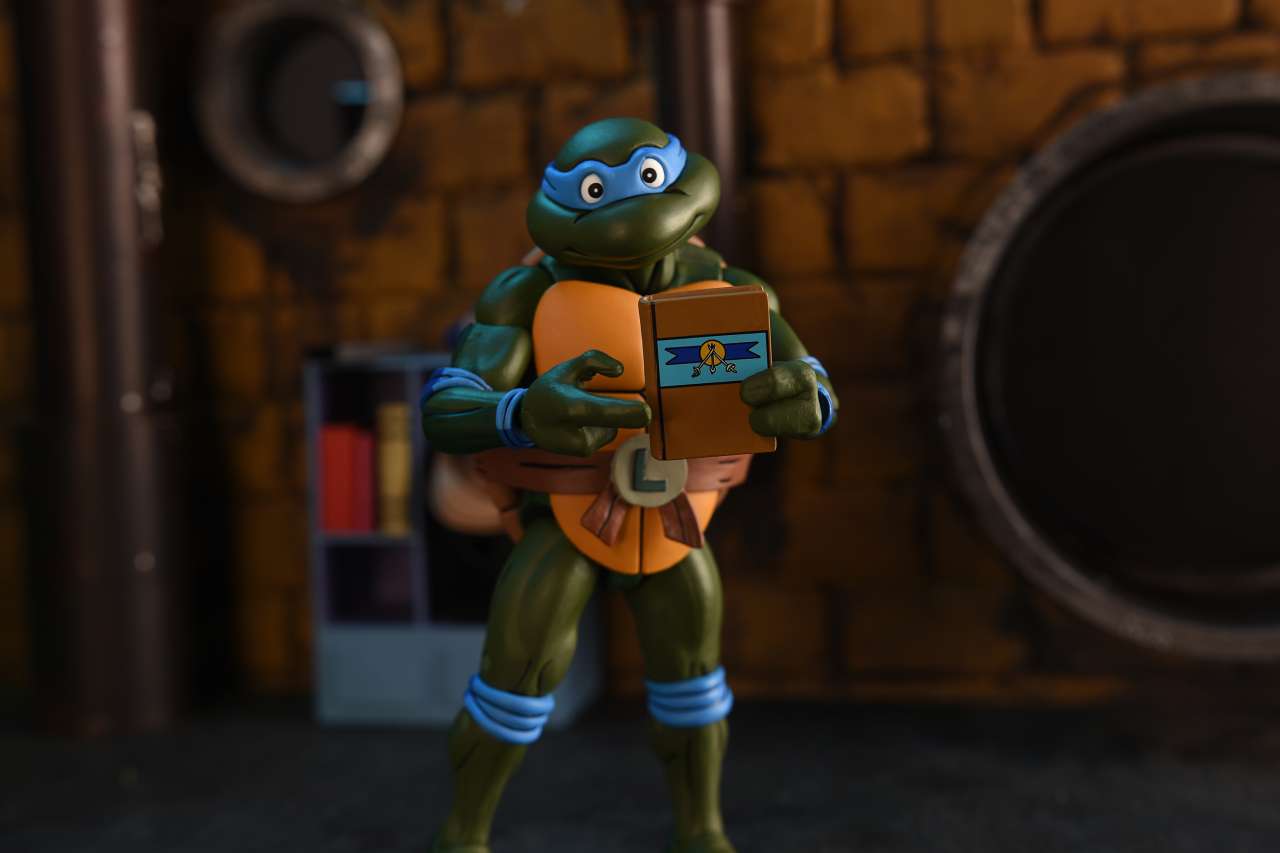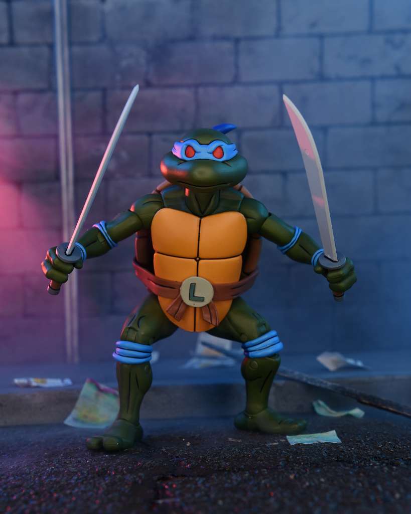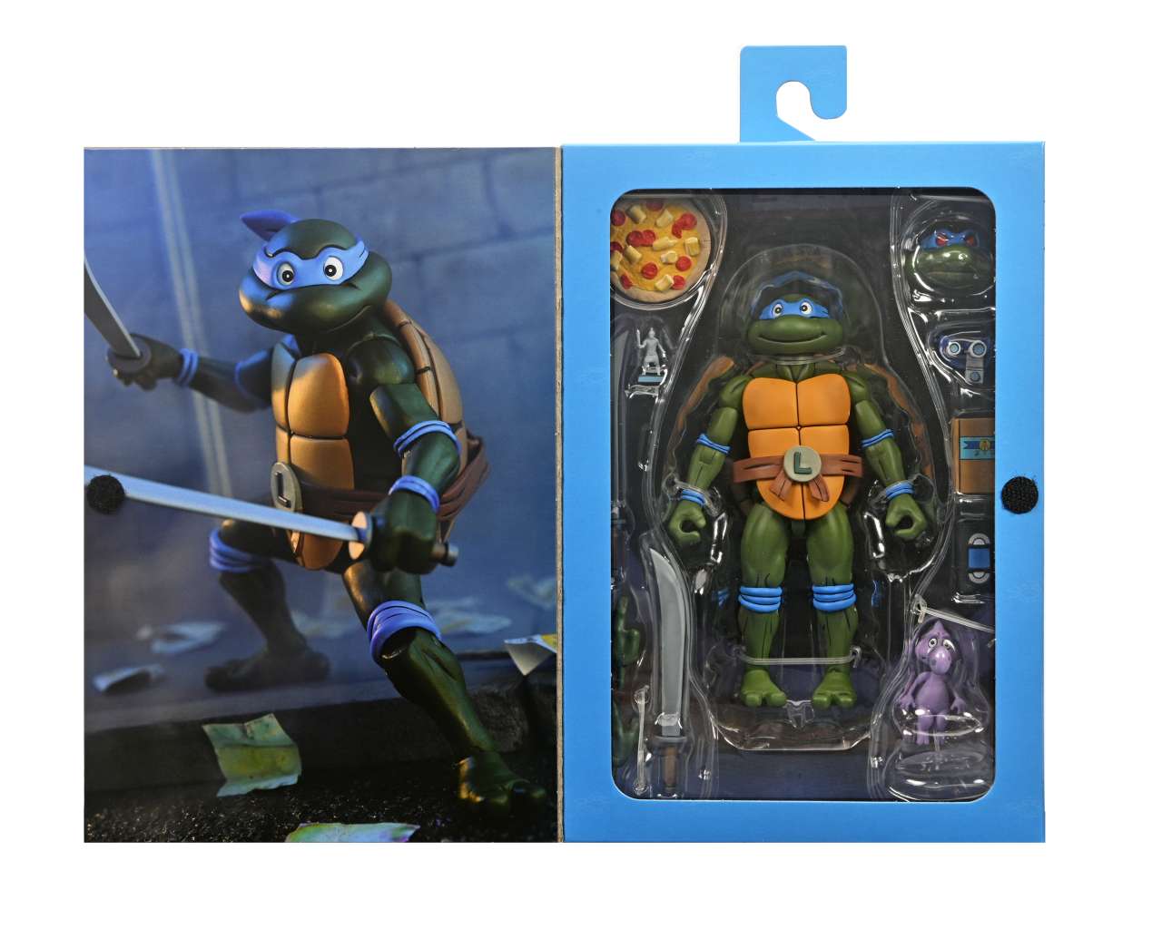 Based on the classic 1980s Teenage Mutant Ninja Turtles cartoon series! Leonardo leads and is getting the “Ultimate” treatment with this 7-inch scale action figure loaded with accessories. He includes an evil robot clone head from the episode "Combatland," plus a pepperoni & marshmallow pizza, and more episode-specific accessories! Comes in all-new Pizza Club VHS style collectible packaging.