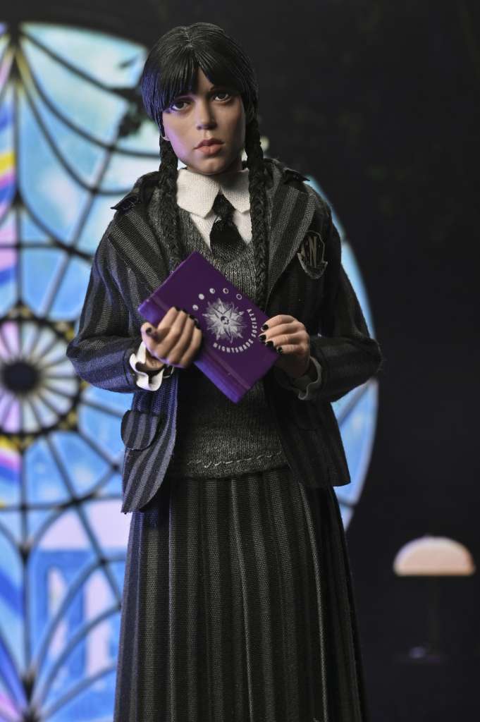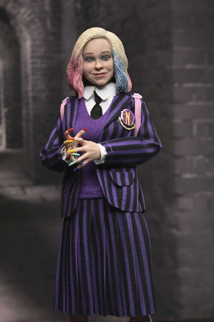 Show off your love for the critically acclaimed Netflix series Wednesday every day of the week with this action figure 2-pack from NECA! Smart, sarcastic, and a little dead inside, Wednesday finds herself expelled and transferred to Nevermore Academy, a private school for monstrous outcasts. There, she meets her complete opposite: her roommate Enid Sinclair, a bright and cheerful werewolf who loves color. Despite their differing personalities, they form a close friendship and work together to solve the mysteries of Nevermore Academy. Wearing their school uniforms, these fully poseable 8-inch figures feature tailored soft goods clothing inspired by vintage toy lines. Accessories include interchangeable hands, Nightshade Society book, Codex Umbrarum (Book of Shadows), and backpack.