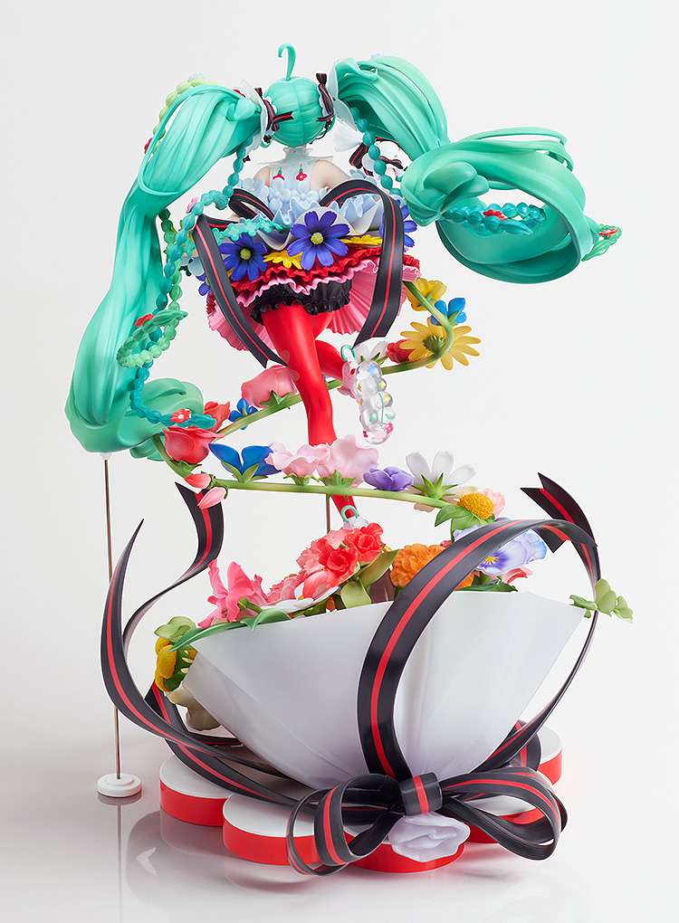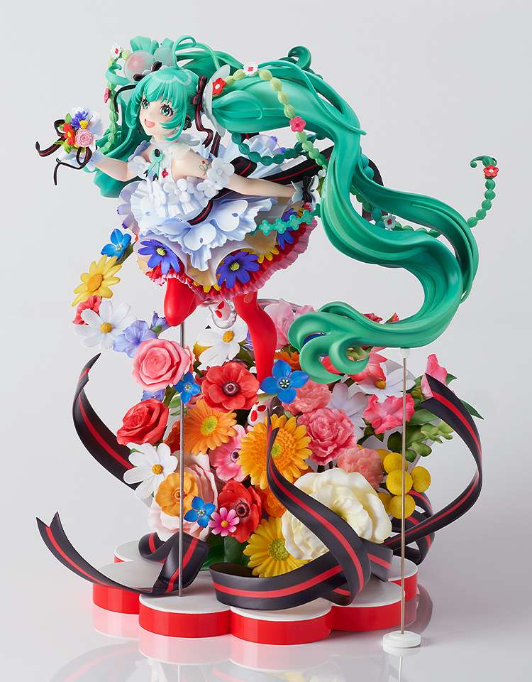 From "Character Vocal Series 01: Hatsune Miku" comes a 1/7 scale figure based on the main visual illustration from "Hatsune Miku JAPAN LIVE TOUR 2025 ~BLOOMING~"! This model beautifully captures the essence and mood of illustrator Mai Yoneyama’s vibrant artwork. The detailed sculpting of the flowers and Miku's pose as she appears to jump right out of a bouquet are truly a sight to behold! As the tour theme "BLOOMING" suggests, this Hatsune Miku figure blossoms with charm and is sure to brighten your collection like a radiant flower.