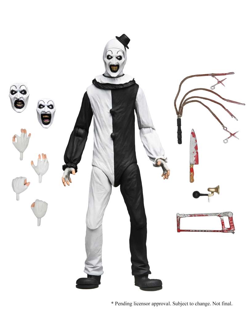 From Damien Leone’s hit Terrifier films comes the iconic Art the Clown, now joining NECA’s line of quarter-scale horror figures! Standing over 18 inches tall, this fully articulated Art the Clown captures the nightmarish essence of the new horror icon with chilling accuracy. Art comes equipped with a gruesome arsenal of bloody weapons and accessories, including a kitchen knife, clown horn, hacksaw, and flail. Customize the mayhem with interchangeable hands and faceplates, each depicting a different maniacal expression to bring his disturbing personality to life. Presented in collector-friendly window box packaging, this figure is a must-have centerpiece for any horror fan’s collection!