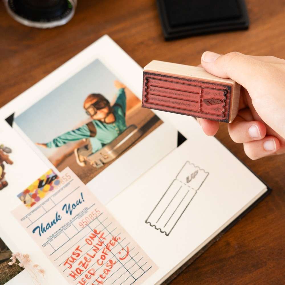 Scrapbook set based on the Disney Pixar movie Up including: 1 suitcase 20 x 30 x 6.5 cm, 1 album 29.5 x 19 cm, 1 black ink pen, 2 washi tapes, 1 stamp, 3 A6 postcards, 3 A6 sticker sheets and 3 A6 photo holder sticker sheets.