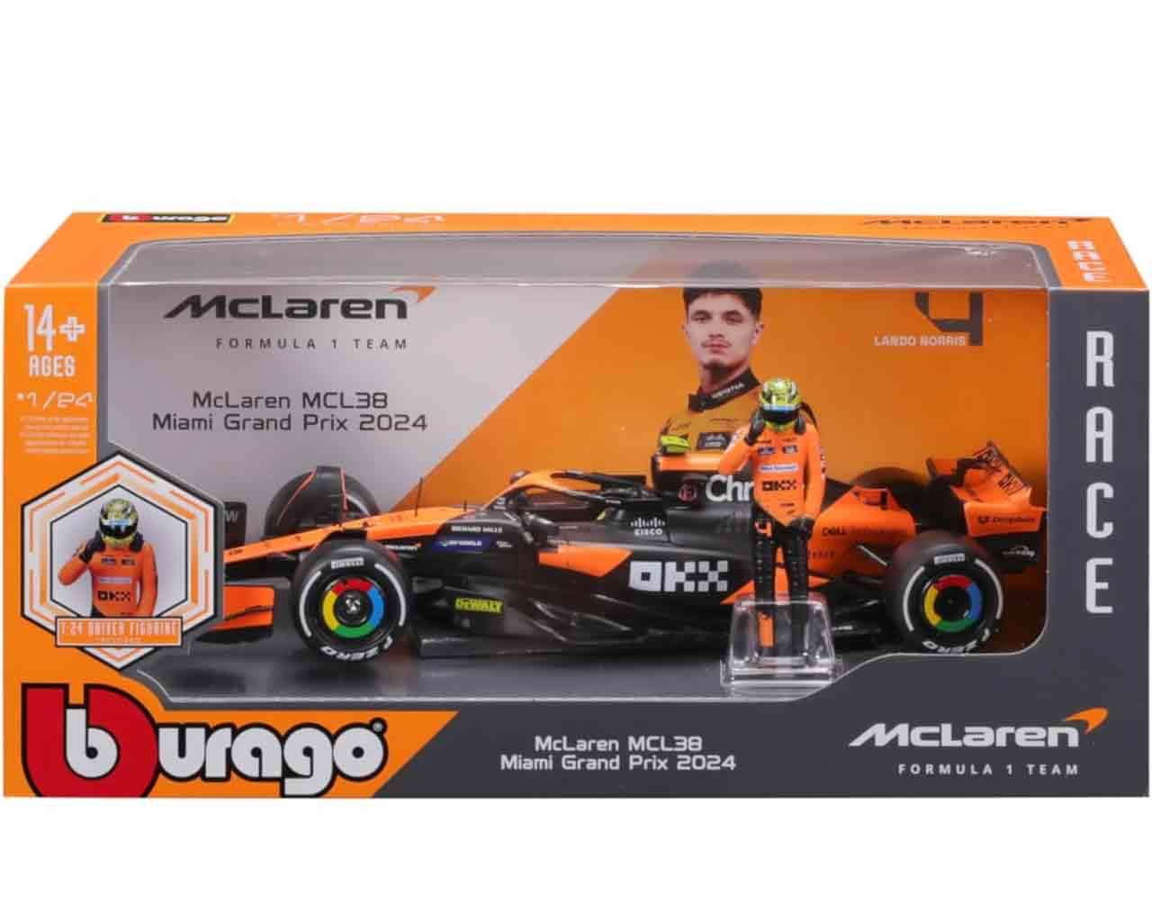 F1 mc laren mcl38 with norris figure - 1:24 die-cast model