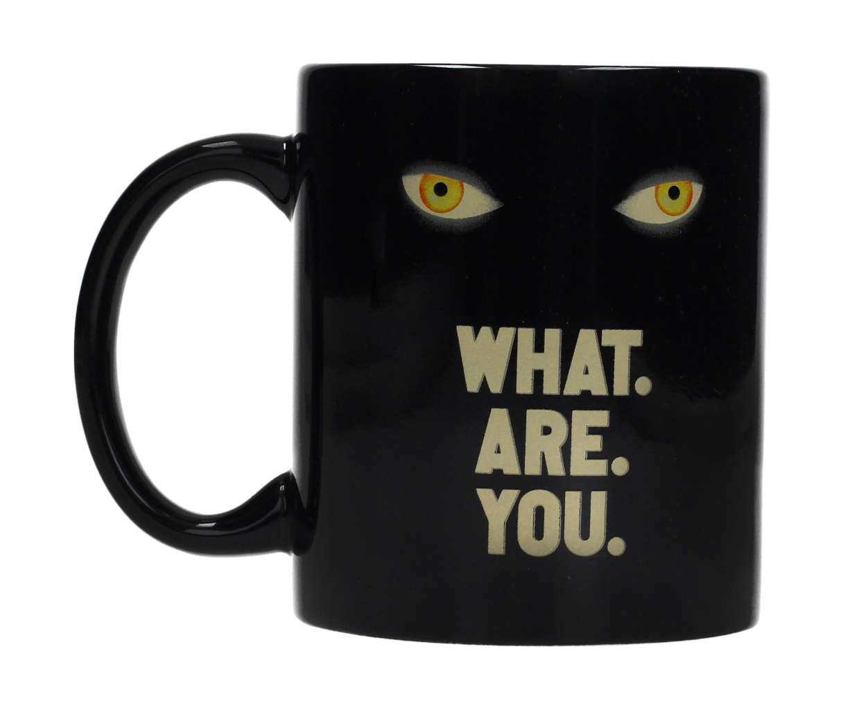 "This 11 oz ceramic mug perfectly captures the haunting essence of Welcome to Derry, the newest expansion in the IT universe. With yellow eyes that seem to follow you in every sip and the phrase ""WHAT. ARE. YOU."" in visual relief, it is impossible not to feel that touch of mystery that surrounds the city where it all began.