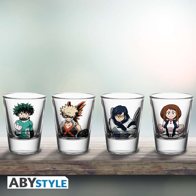 To overcome the threat of the villains, a new crack team has been formed! Midoriya, Bakugo, Tenya and Uraraka are ready to face any danger in this set of 4 My Hero Academia shooters by ABYstyle!