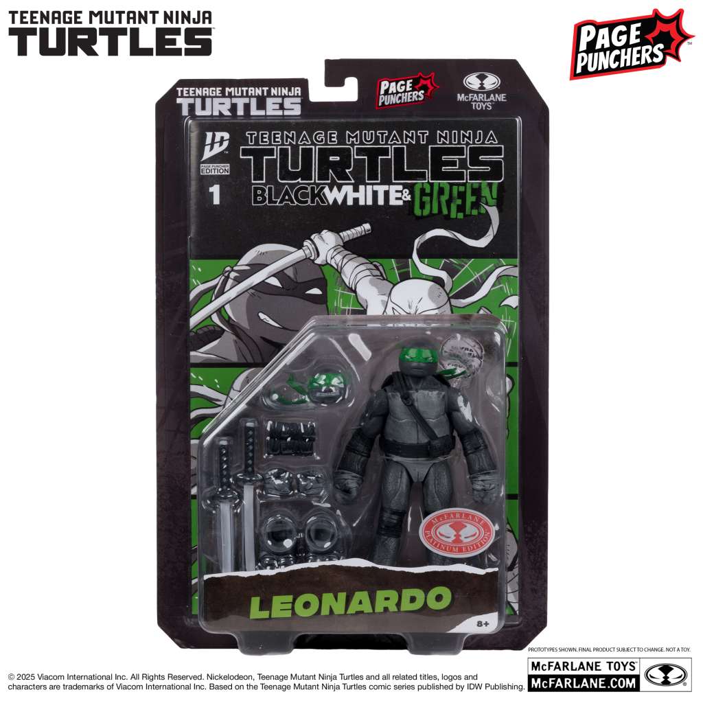 teenage mutant ninja turtles 5inch leonardo figure with comic (b,w&g variant)