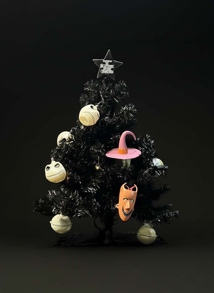 Decorated Christmas tree with lights (American plug – requires a transformer to operate)