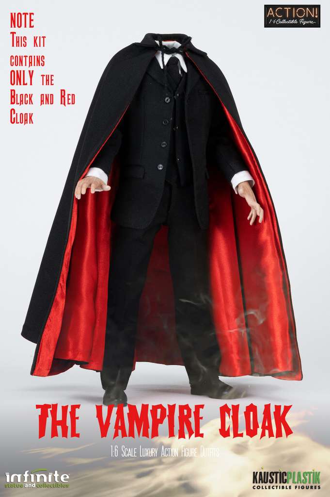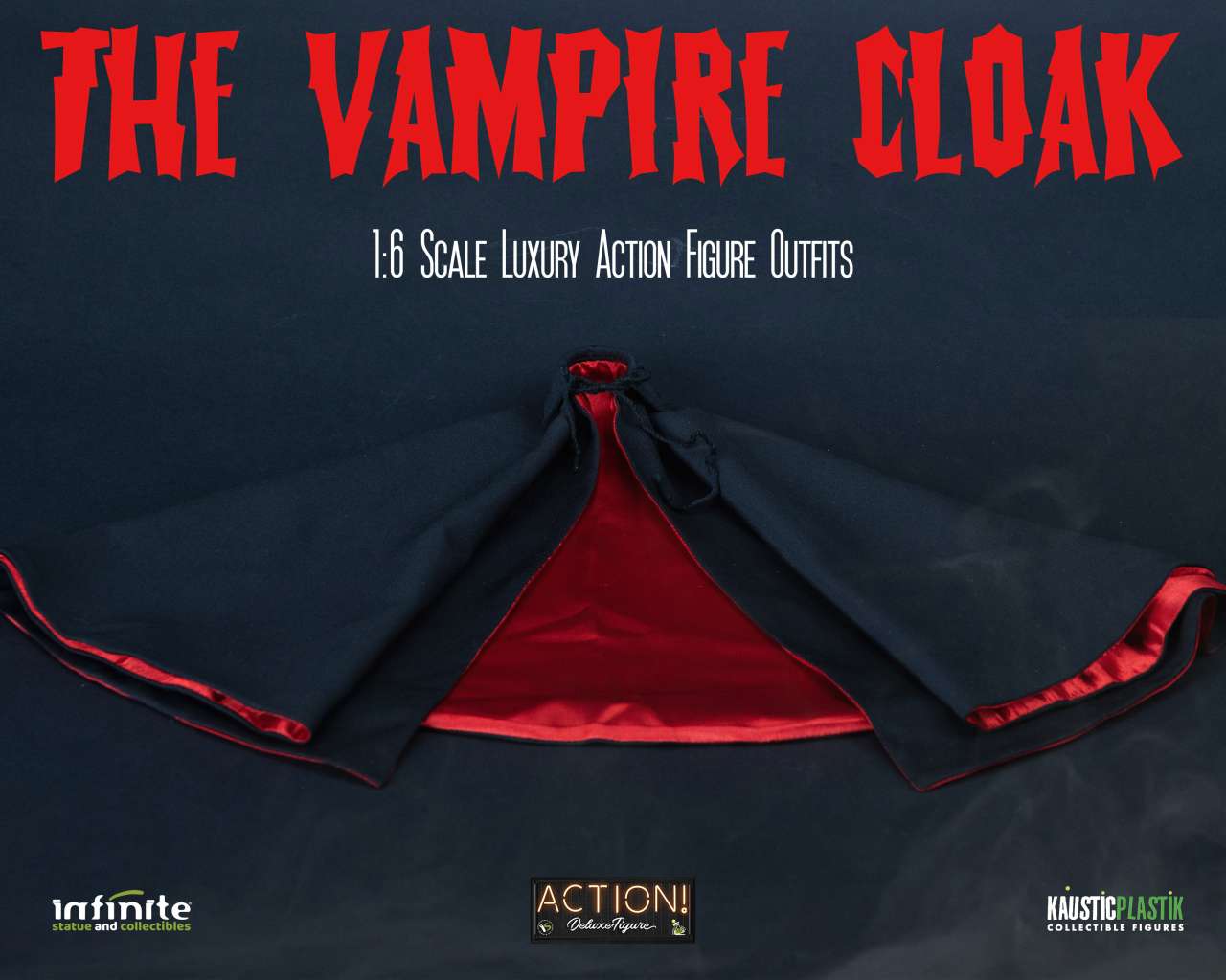 Complete your Vampire’s outfit with this luxury and classic black and red cloak. The Vampire Cape is handmade in fabric and fits perfectly to any figure. From Infinite Statue & Collectibles and Kaustic Plastik.