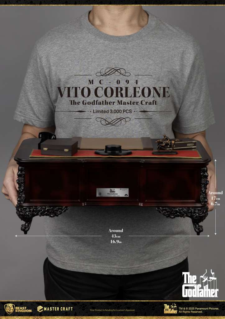La serie Master Craft di Beast Kingdom presenta Vito Corleone dal leggendario film Il Padrino. Questo oggetto da collezione cattura l'iconica interpretazione di Marlon Brando con una squisita scultura 3D e dettagli dipinti a mano: smoking nero, rosa rossa e il gatto tra le sue braccia. Lo smoking in tessuto di alta qualità, le texture realistiche e la base ispirata al film con la scrivania, la sedia e il gatto di Corleone creano un'esposizione immersiva. Un cassetto funzionale e un tappeto personalizzato aggiungono un tocco raffinato. Limitata a 3.000 pezzi in tutto il mondo, ogni statua include una targa metallica numerata. Un simbolo senza tempo di potere e tradizione per ogni collezionista.