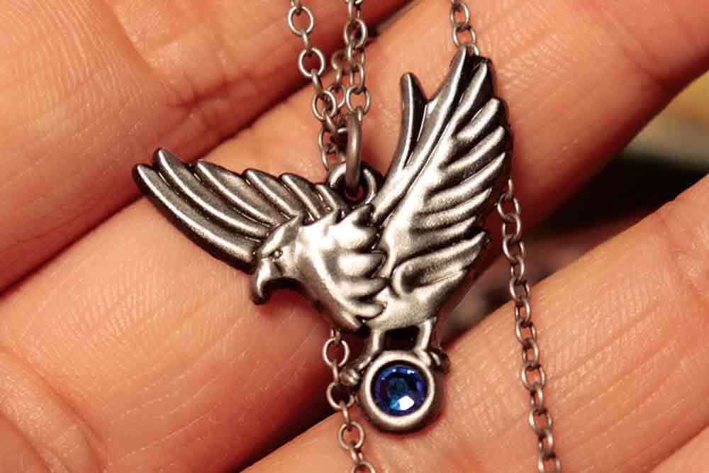 Questa inconfondibile collana con aquila è stata indossata da Ashley Graham, figlia del Presidente Graham, che è stata rapita. Con dettagli elaborati, questa collana di metallo presenta anche un piccolo gioiello blu portato dall'uccello.