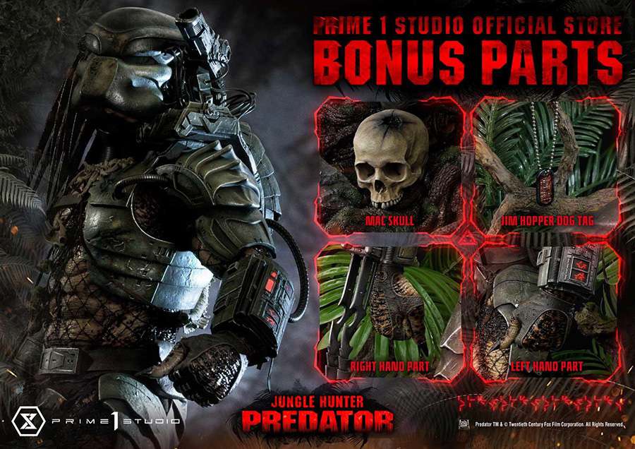 Prime 1 Studio aggiunge alla serie Museum Masterline la statua in scala 1/3 di Jungle Hunter Predator versione Deluxe Bonus, da Predator del 1987. Magnifica scultura in resina perfetta in ogni dettaglio, che include per questa esclusiva versione parti extra e accessori intercambiabili, funzioni luminose e teste con differenti maschere. Arriva in edizione limitata a 999 copie.
