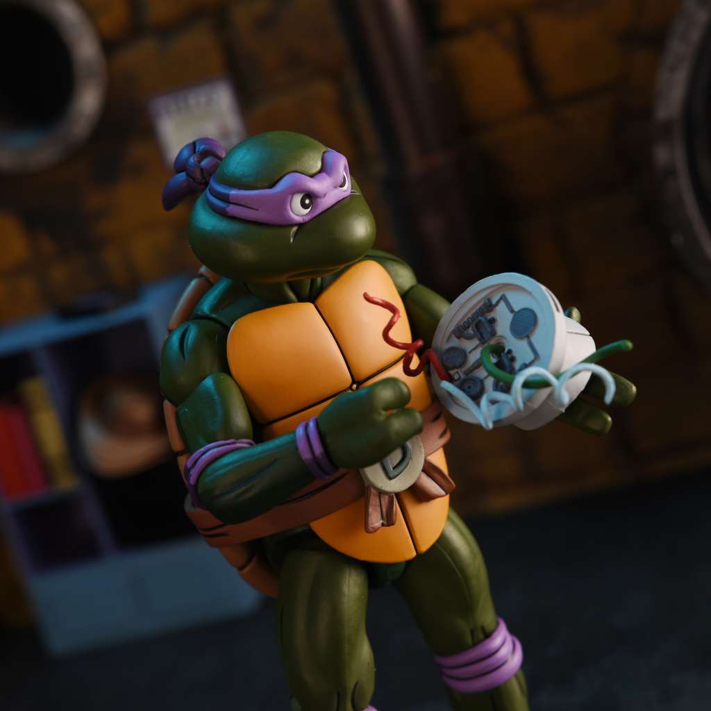 Based on the classic 1980s Teenage Mutant Ninja Turtles cartoon series! Donatello does machines and is getting the “Ultimate” treatment with this 7-inch scale action figure loaded with accessories. He’s got a spinning bo staff—necessary to knock out the Shredder and the Foot Clan—plus a pickles & avocado pizza, peanut butter, and more episode-specific accessories! Also included is a bonus Roadkill Rodney head that is compatible with the previously released Roadkill Rodney figure! Comes in all-new Pizza Club VHS style collectible packaging.