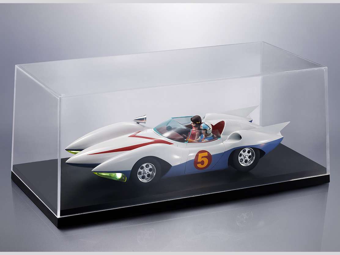 This is a long-awaited finished model of about 1/18 scale (total length about 270 mm) that reproduces seven special functions and features and gimmicks of the Mach5, and also includes figures of the main characters Speed Racer and Trixie! Included in the box you'll also find a Dedicated display case and a Pedestal stand