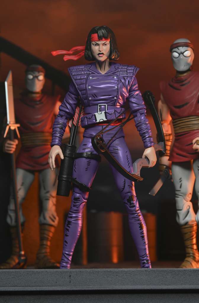 Based on her cover appearance in the “City at War” storyline in Eastman & Laird’s Teenage Mutant Ninja Turtles comic books from Mirage Studios! Karai, the new leader of the Foot Clan, is both a fearsome foe and uneasy ally to the Turtles. Featuring an authentic, stylized comic book deco, this Karai Mercenary action figure is ready to join your TMNT collection. The 7-inch scale NECA figure includes interchangeable hands, bow and arrow, and quiver. Comes in collector-friendly window box packaging with artwork by Kevin Eastman.