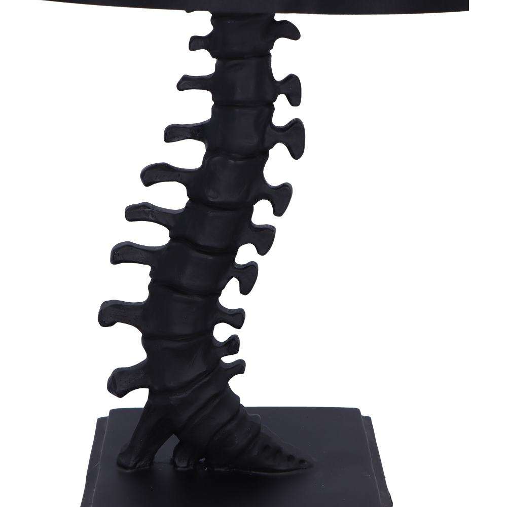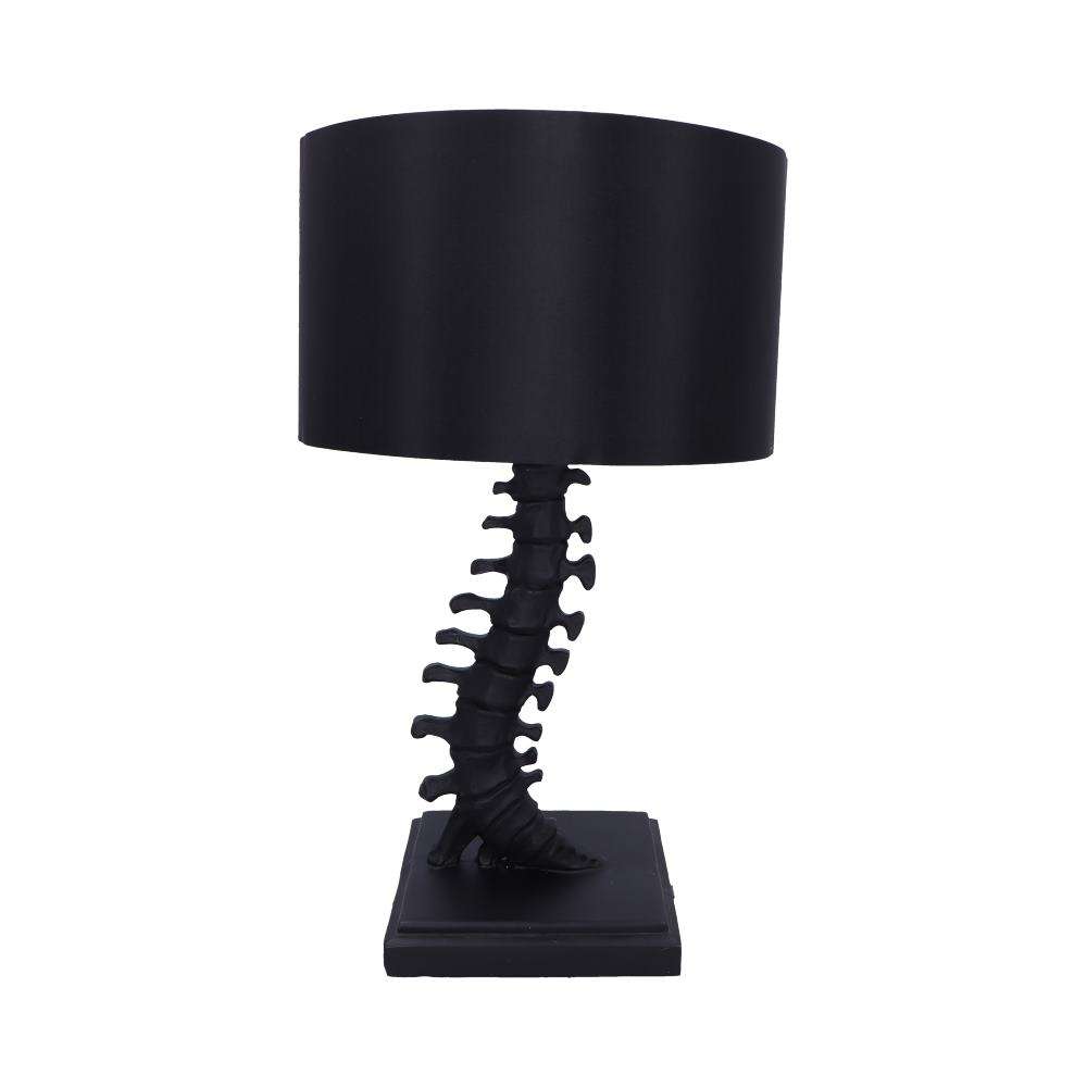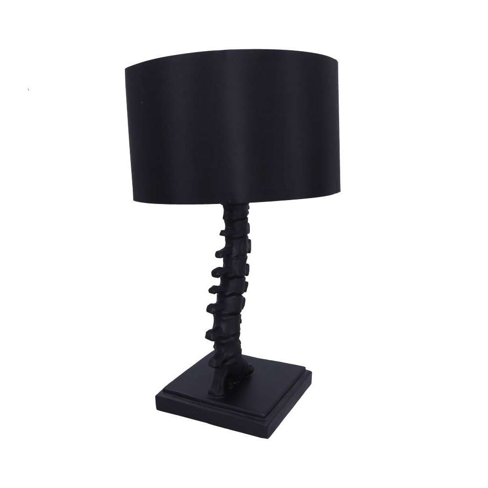 Featuring a resin spine stem, bent in eerie curvature, topped with a black lampshade and fitted with a standard UK plug.