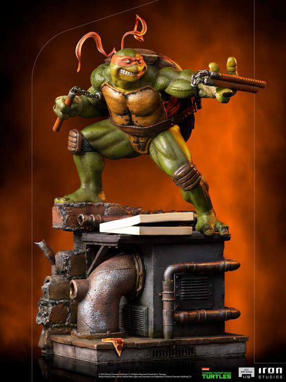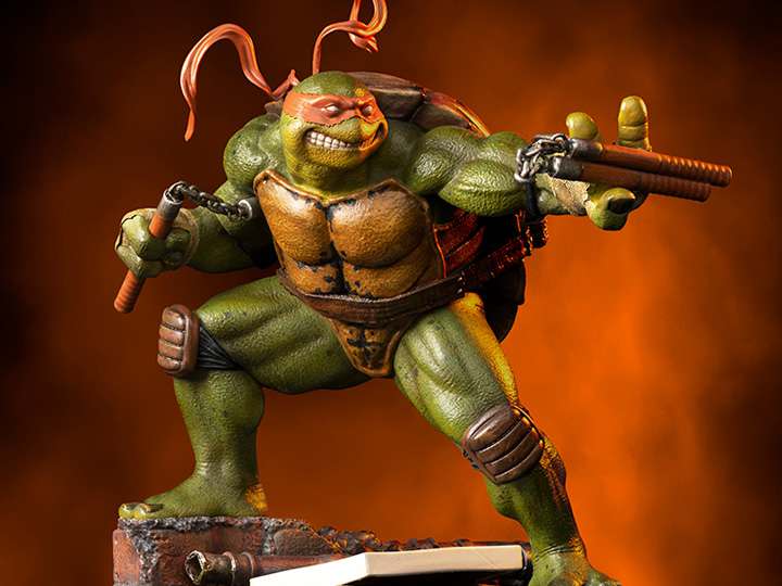Based on the classic Teenage Mutant Ninja Turtles characters, Michelangelo joins the Battle Diorama Series! He is depicted with his signature weapons standing in a battle pose on top of a sewer diorama.