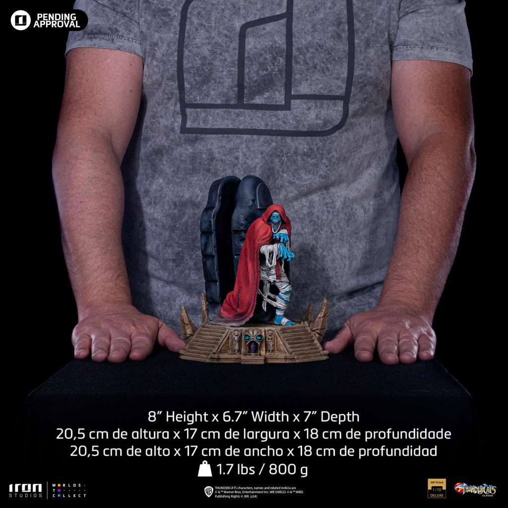 Iron Studios also bring the statue “ Mumm-Ra Decayed Form Deluxe - ThuderCats - Art Scale 1/10”, on top of a raised platform of his Black Pyramid, the frontal part